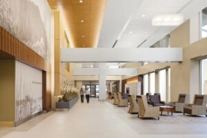 Interior design for facility-wide cosmetic renovation of hospital public spaces for an occupied 180,000 square foot inpatient facility.