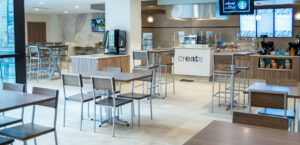 Renovation of 4000 sf cafeteria and servery in a 100 seat cafeteria and servery for active acute care hospital.